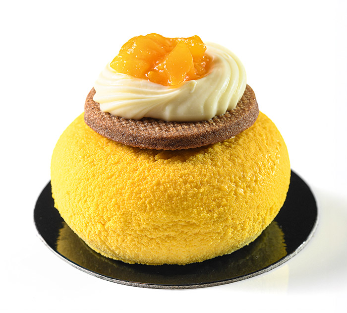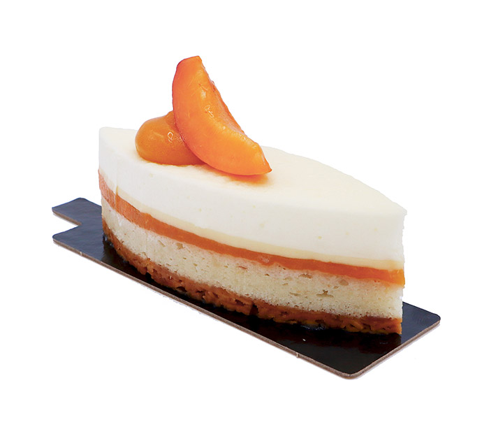 PROVENÇAL : Mousse légère, compotée d’abricots, crème au citron, dacquoise amandes, croustillant aux amandes, abricots frais