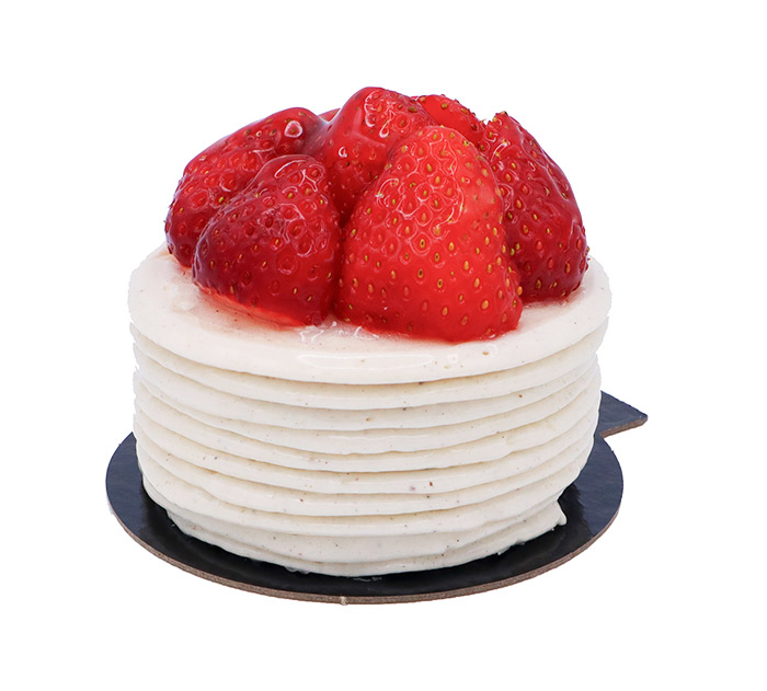 FRAISIER : Mousseux à la vanille, compotée de fraises, cake, ganache montée à la vanille, fraises fraîches