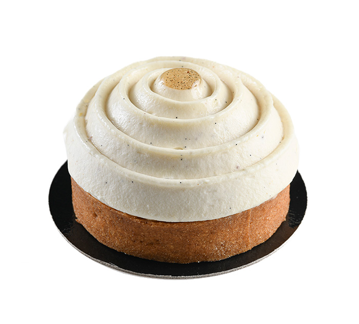 TARTE VANILLE : Pâte sucrée, croustillant amandes vanille, mousseux à la vanille, caramel à la vanille, cake à la vanille, ganache montée à la vanille