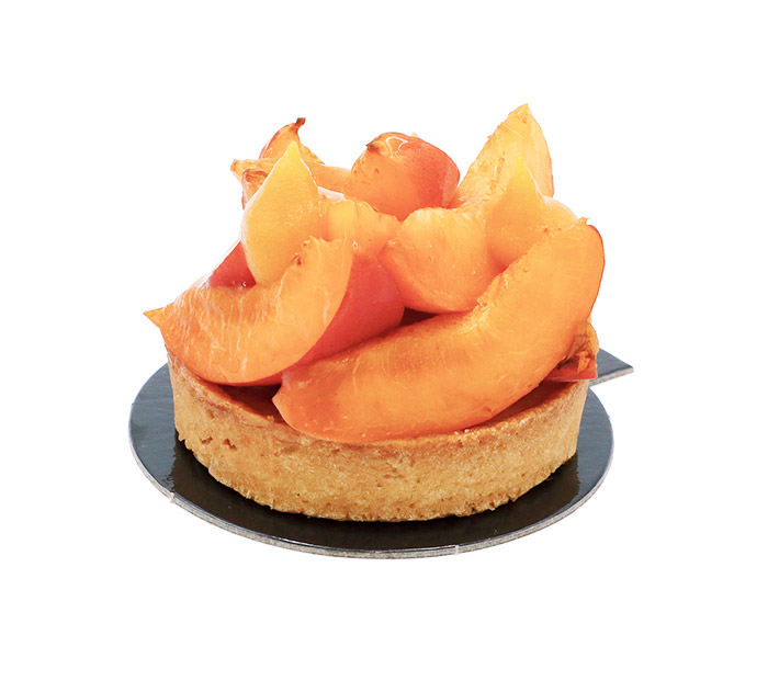 TARTE ABRICOTS-PISTACHE : Pâte sucrée, clafoutis aux abricots, crémeux à la pistache, pectiné d’abricots, abricots frais
