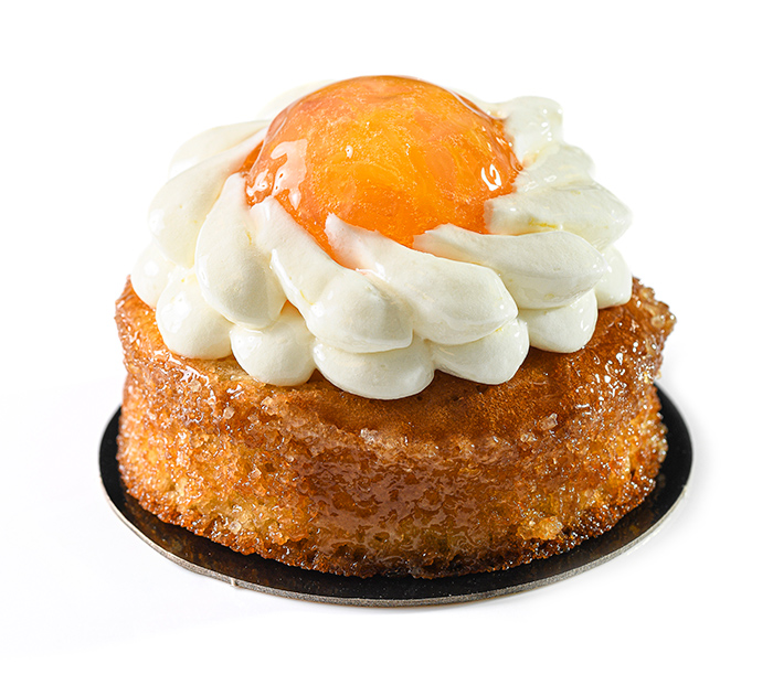 AMANCIA : Biscuit Pain de Gênes punché avec un sirop au citron, crémeux au citron, gélifié d’orange et pamplemousse, ganache montée aux zestes de citron