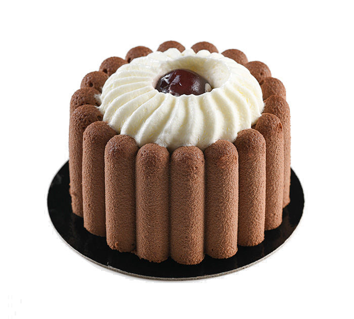 FORÊT NOIRE : Mousse légère au chocolat noir 66%, crémeux à la vanille et Griottines, cake au chocolat, chantilly